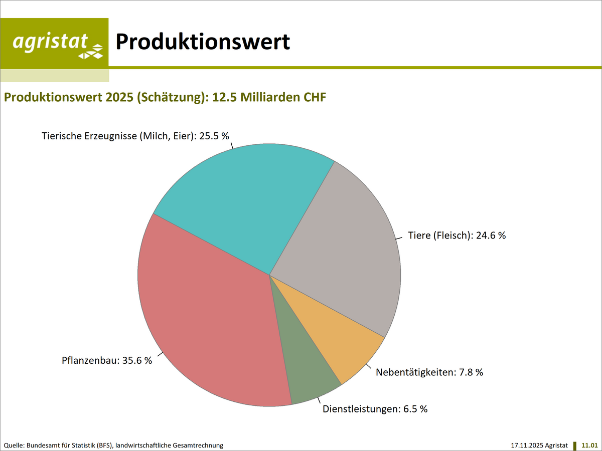 Die landwirtschaftliche Gesamtrechnung wird durch das Bundesamt für Statistik (BFS) erstellt. Sie ist Bestandteil der volkswirtschaftlichen Gesamtrechnung der Schweiz und liefert detaillierte Angaben zum Produktionswert der Schweizer Landwirtschaft, zu den Kosten der Vorleistungen und zur Wertschöpfung. Agristat liefert einen Teil der Daten zum Produktionswert der Landwirtschaft und ist an der Erstellung dieser Statistik beteiligt.